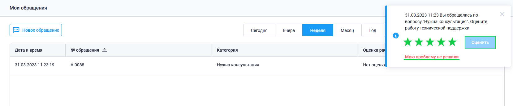 Оценка работы технической поддержки Личный кабинет БИФИТ Бизнес